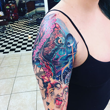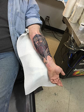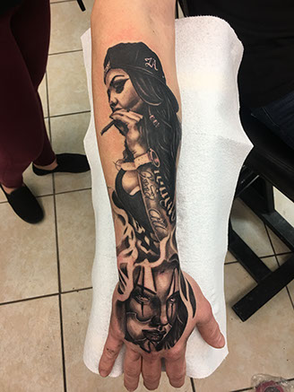 I am a custom artist looking for clients who just want awesome tattoos. I am always looking for clients with similar interest as my own and you can look through my portfolio and get a gist of my likes. My goal is I want people to stop you in a store and ask you to look at your work. All the while growing as an artist. Thanks for checking me out